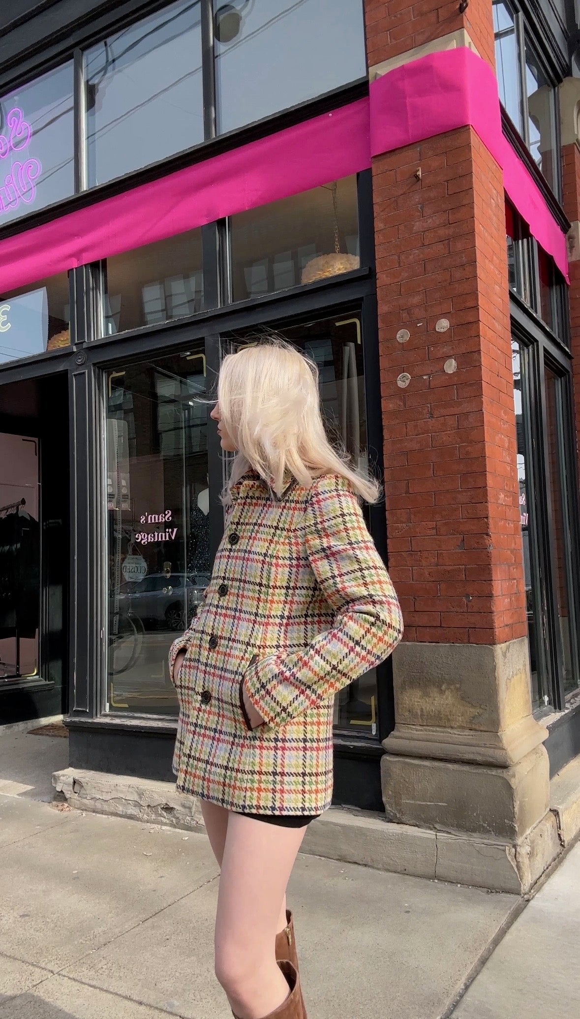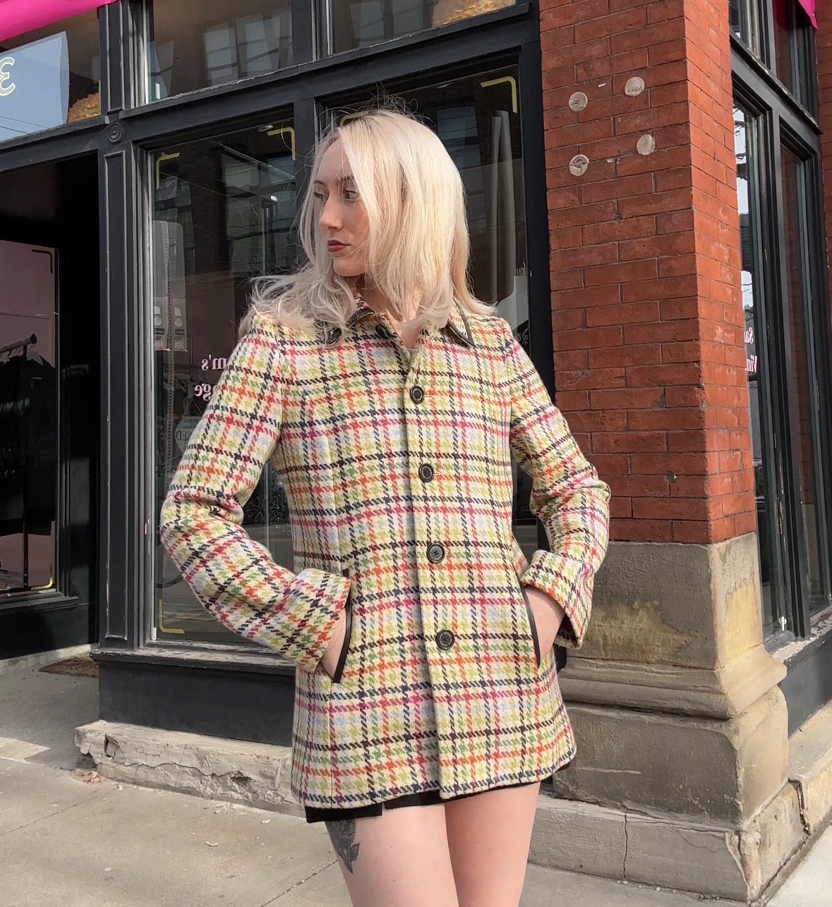 Y2K Coach Tattersall Hampton Tweed 100% Wool Pea Coat size XS